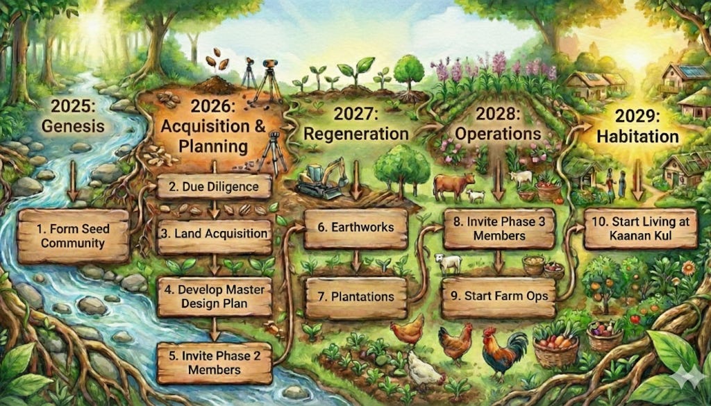 We have often called Kaanan Kul Ekam a proof of concept — a POC. We need to prove that this concept can be gestated by a coalition of believers. Families that believe in their end use and therefore continued patronage of this land. The true success of this POC is when many other communities can build conviction in the viability of the concept. They may not have access to bank loans, and investors, let alone social impact investors. All they need is fewer than ten founding families at an affordable contribution and at least one among them willing to put in the effort on the ground, to get started.